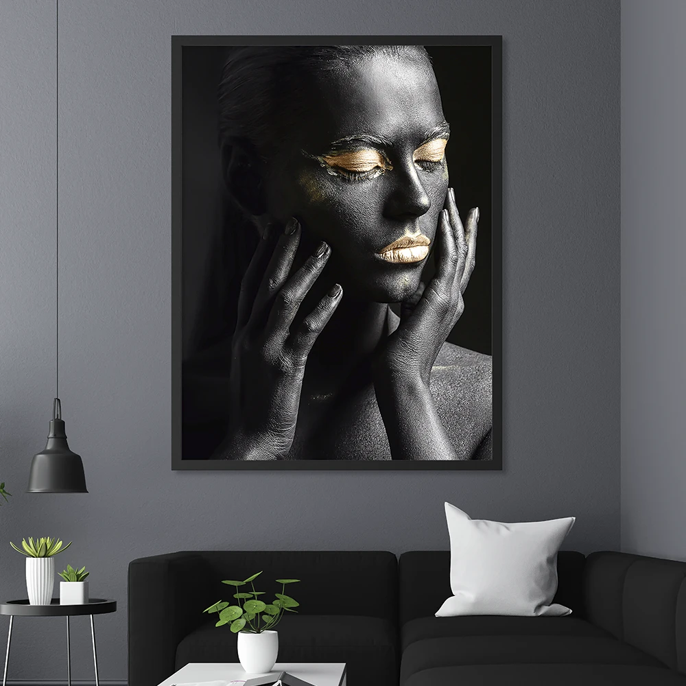 Transform your walls with the bold elegance of our Black and Gold Woman Face Wall Art. This striking portrait features a woman’s face beautifully detailed in deep black with radiant gold highlights, creating a modern and luxurious look. A perfect balance of strength and sophistication, this piece adds dramatic flair to any interior.