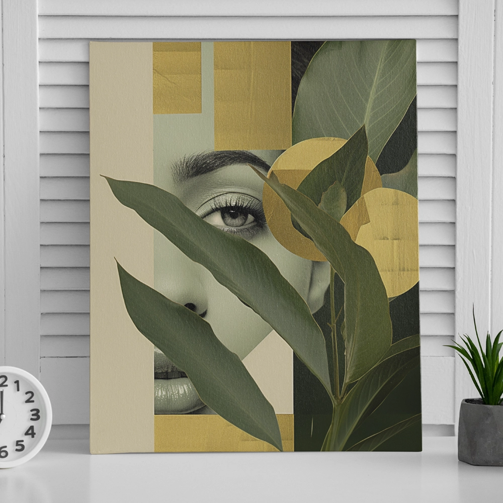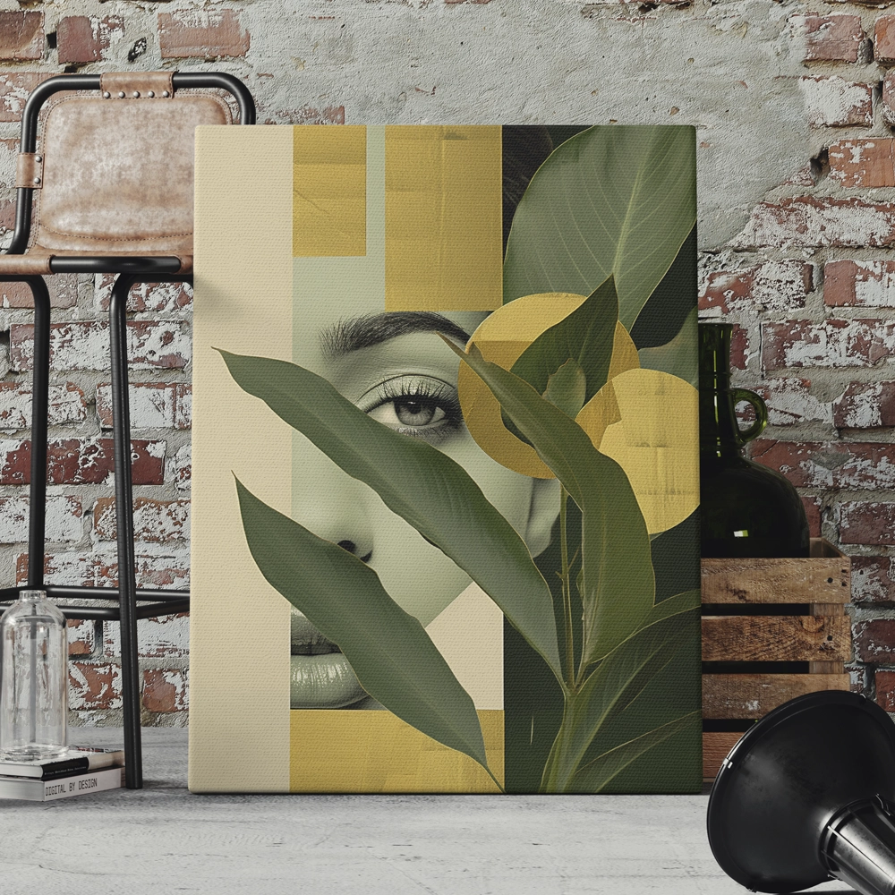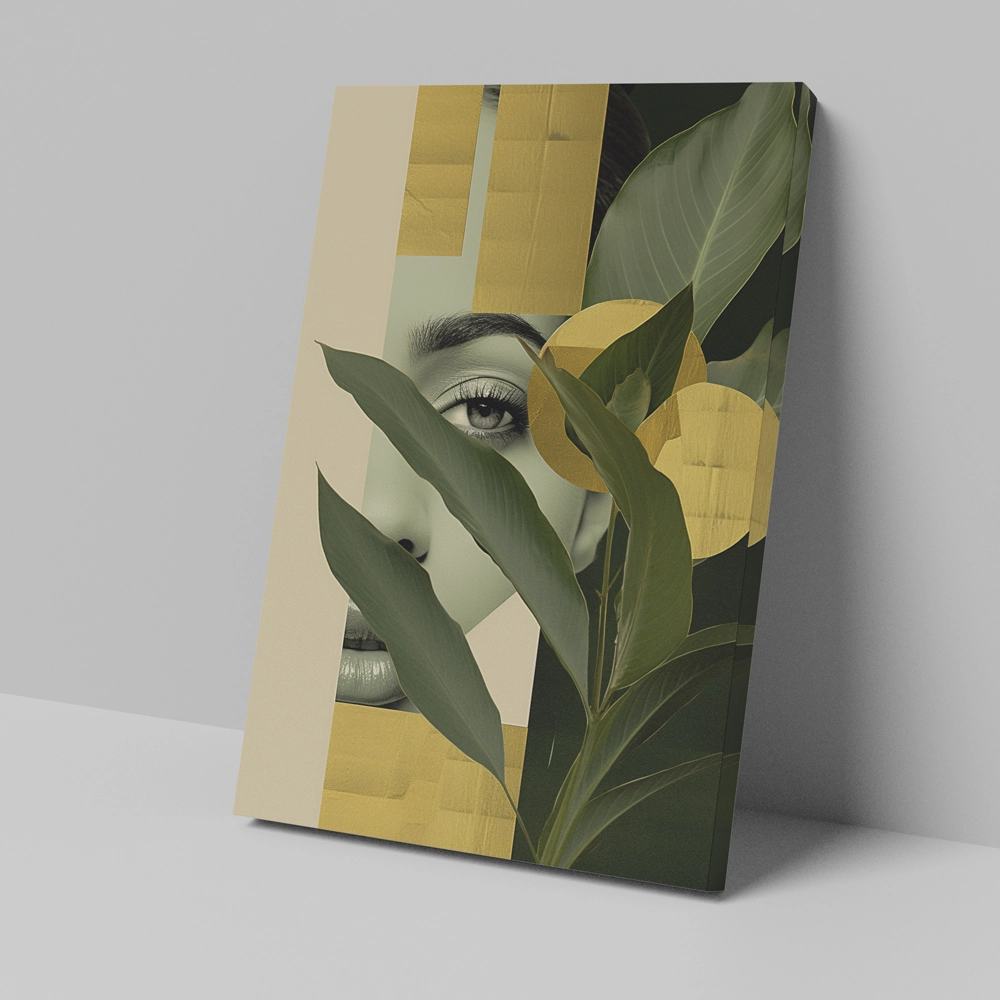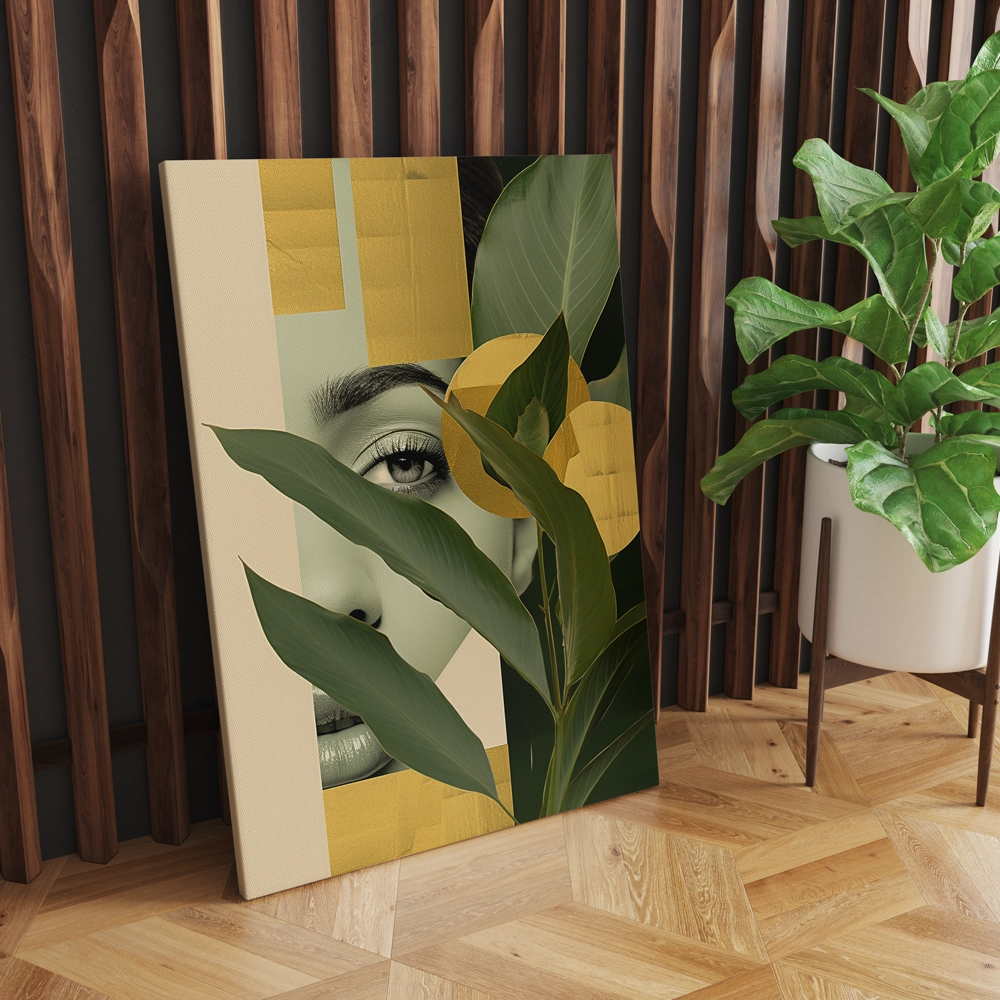 Transform your wall into a sanctuary of style with Botanical Muse, a stunning canvas print that blends natural beauty with modern abstraction. The artwork features lush green foliage layered over a minimalist portrait, accented by rich golden tones that evoke warmth and harmony. Printed on gallery-quality, fade-resistant canvas, this piece is designed to elevate contemporary interiors with an organic yet luxurious touch.