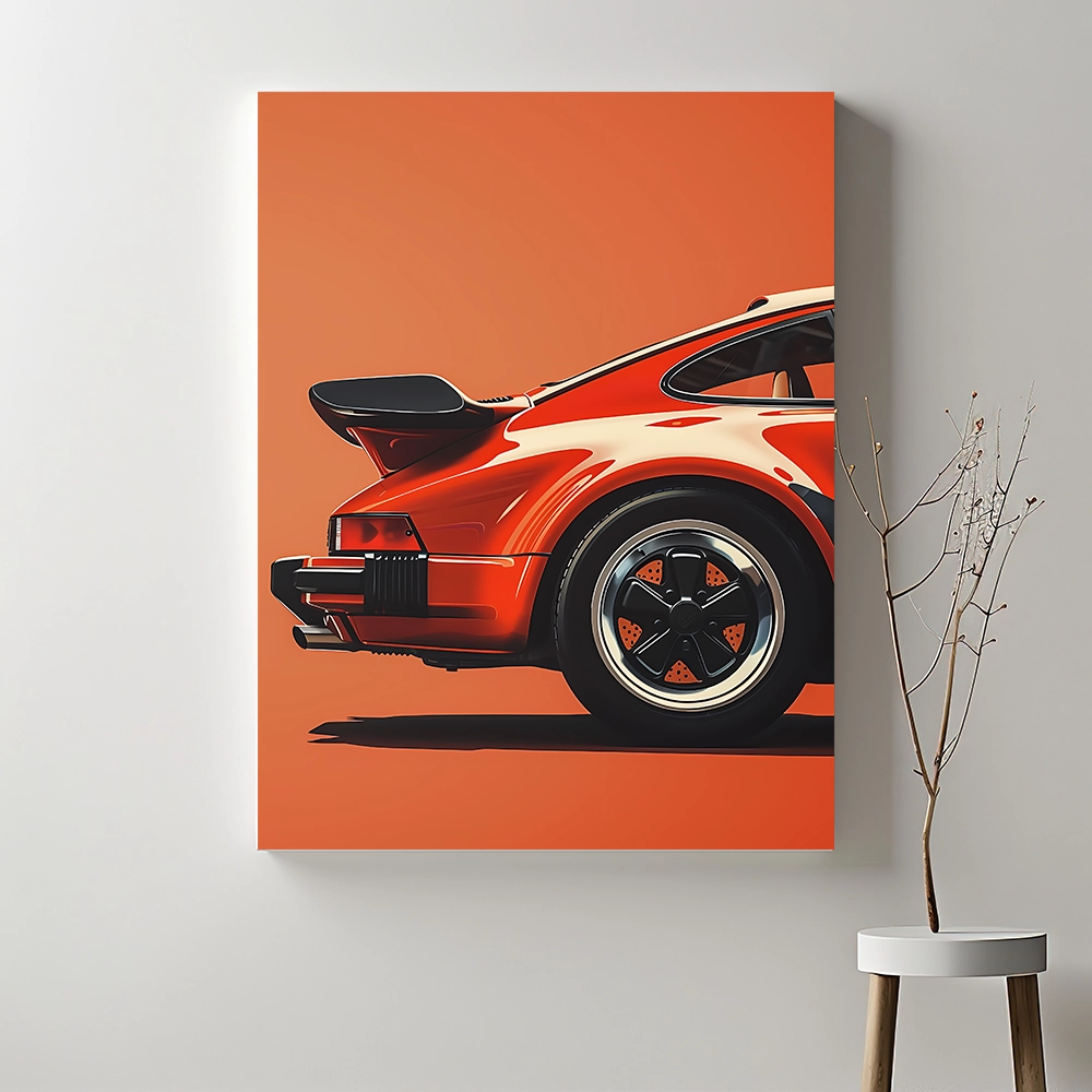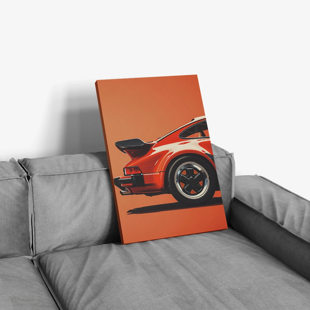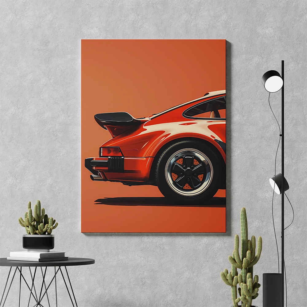 Bring bold energy and refined style to your walls with Crimson Turbo, a minimalist yet powerful automotive art piece. Featuring the back view of a vintage red sports car on a warm orange backdrop, this artwork captures motion, attitude, and timeless design. Printed on high-quality, gallery-wrapped canvas, it adds instant personality and sophistication to any modern or industrial space.