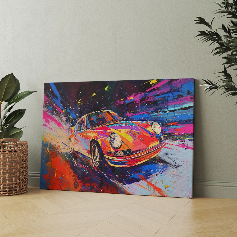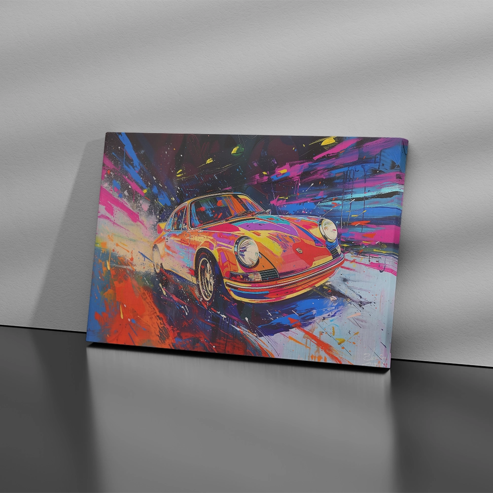 Ignite your walls with Retro Racer, a high-energy canvas print that captures the thrill of motion and the beauty of classic design. The artwork features a vintage sports car painted in a burst of vibrant hues — pink, blue, yellow, and orange — creating a visual explosion of movement and power. Printed on gallery-quality, fade-resistant canvas, this piece is a stunning centerpiece that brings life, style, and speed to any contemporary space.