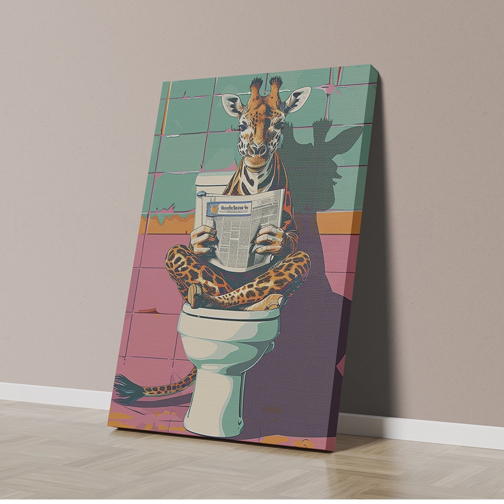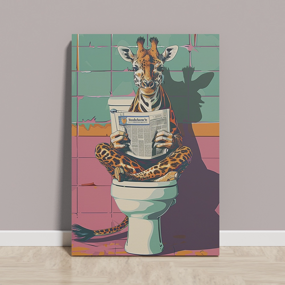 Add a splash of humor and creativity to your space with the Giraffe Reading Newspaper Canvas Wall Art. This quirky artwork features a stylish giraffe sitting on a commode and reading a newspaper — a fun and imaginative piece that’s sure to make anyone smile.