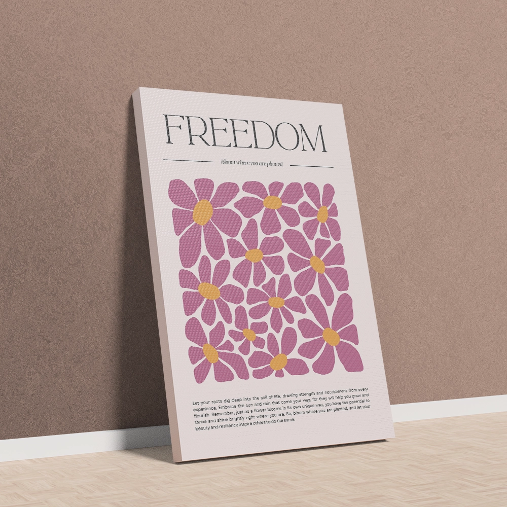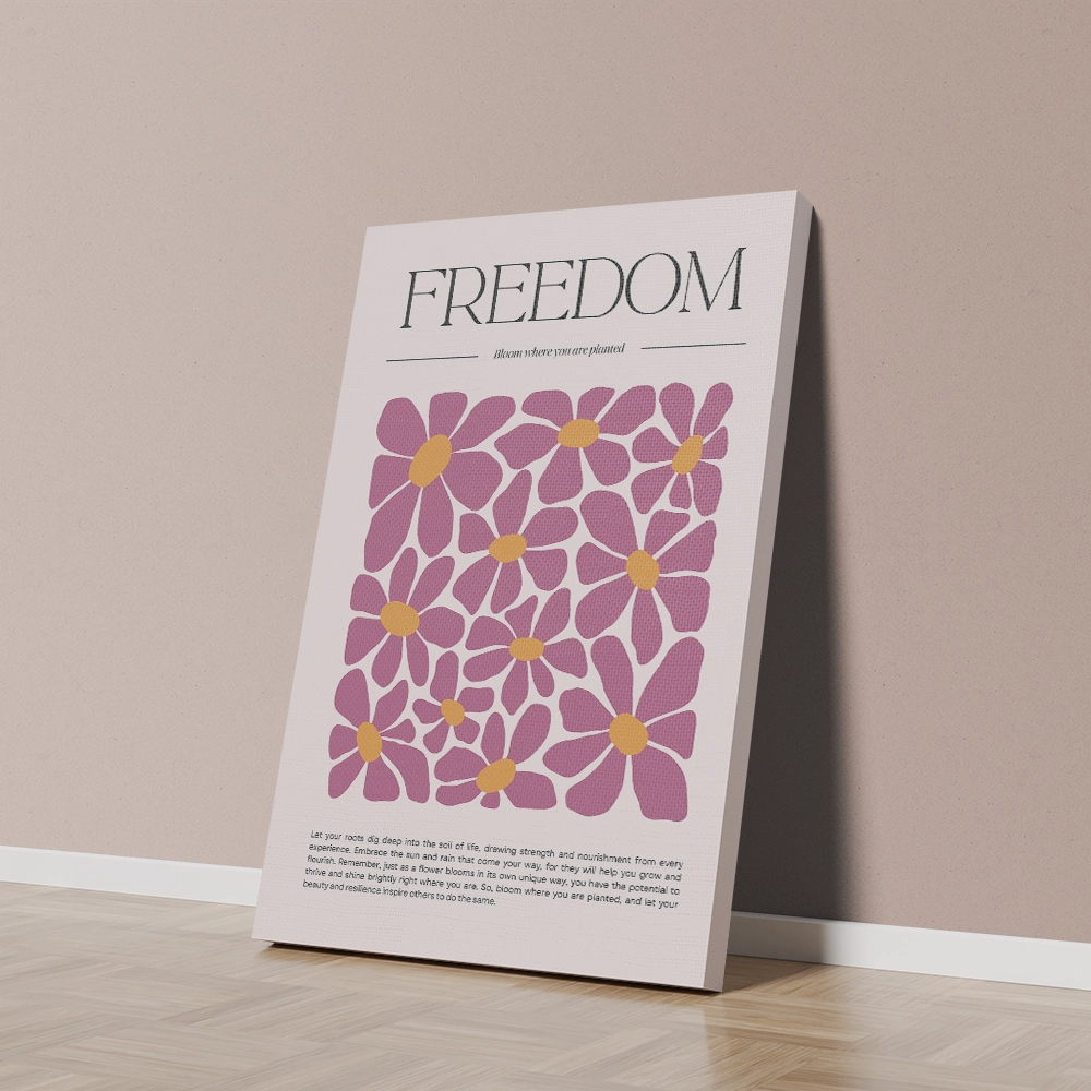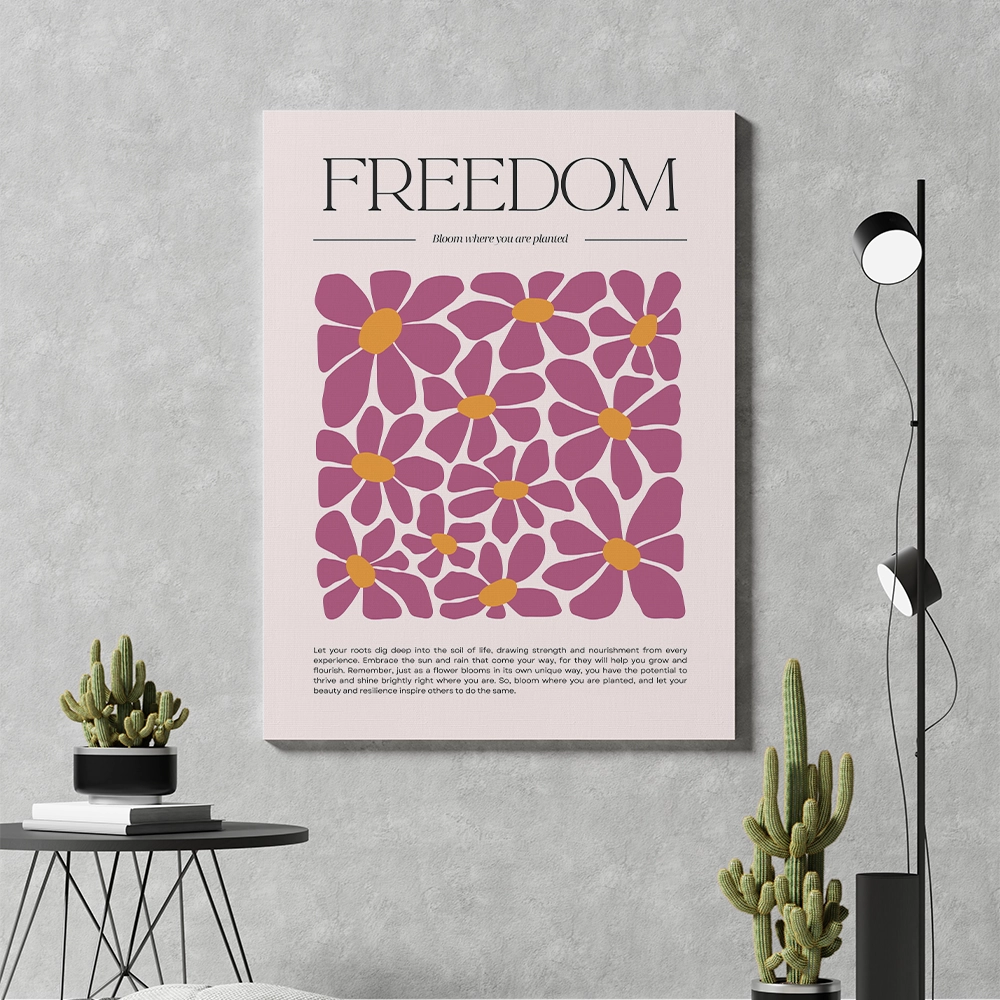 Brighten your home with the Freedom – Bloom Where You Are Planted canvas wall art. Designed with playful, modern florals and a motivational message, this piece celebrates growth, resilience, and positivity. Its bold colors and inspiring words make it a beautiful daily reminder to flourish wherever life takes you.
