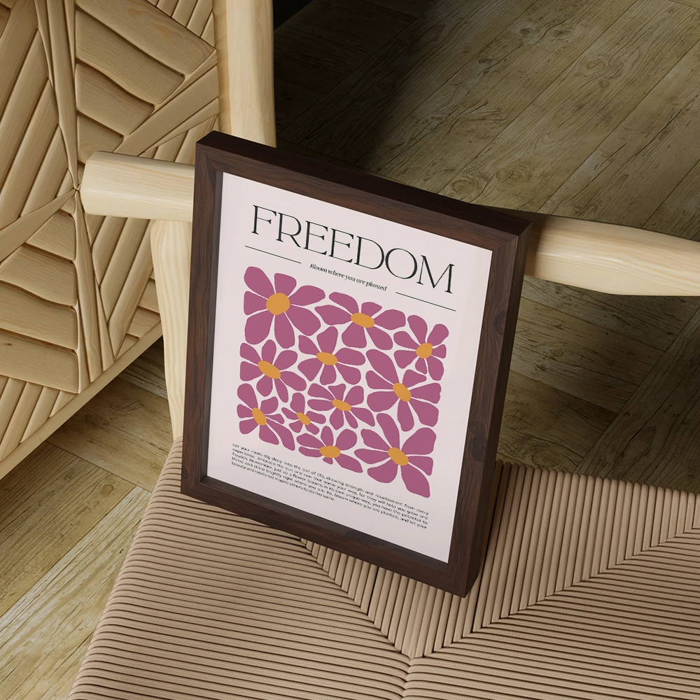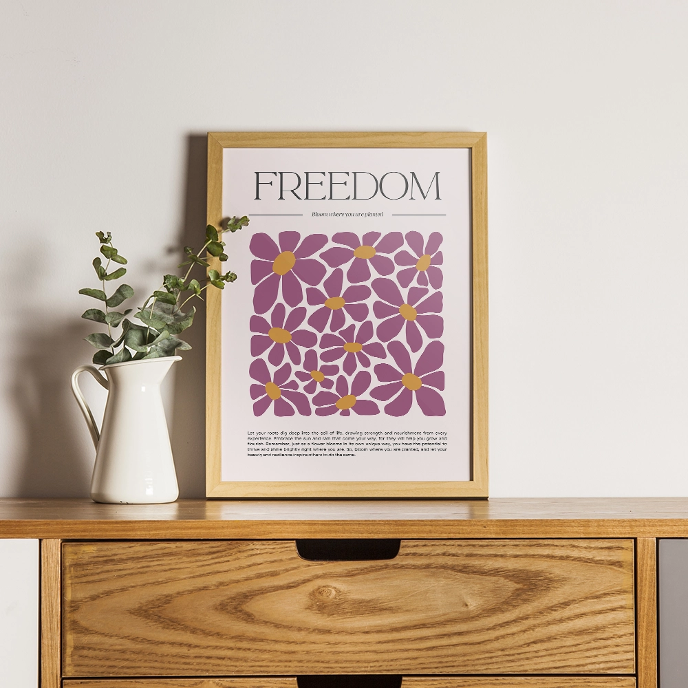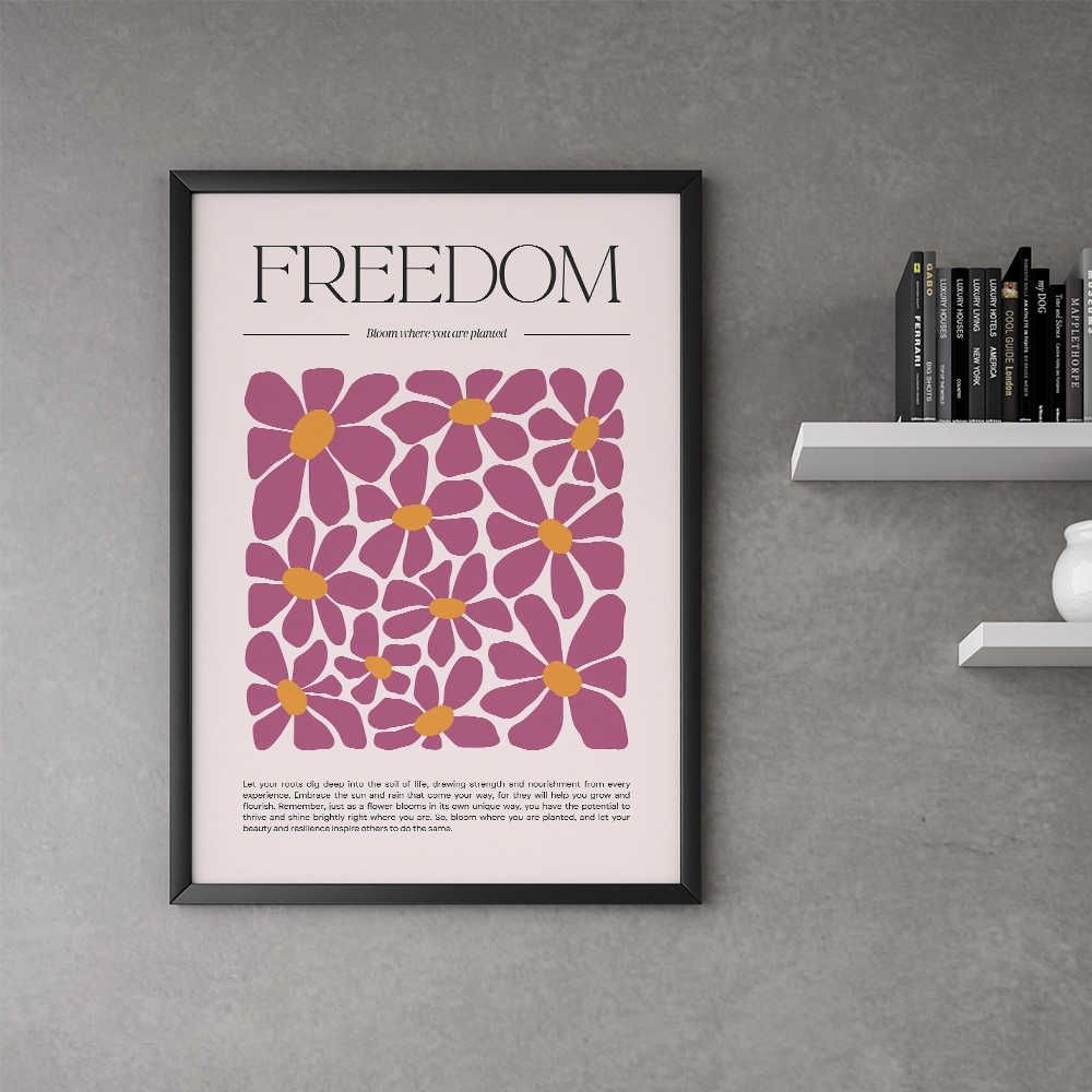 Add inspiration and color to your walls with the Freedom – Bloom Where You Are Planted framed art print. Featuring bold floral illustrations in warm pink and mustard tones, this uplifting design reminds you to thrive and bloom wherever life plants you.