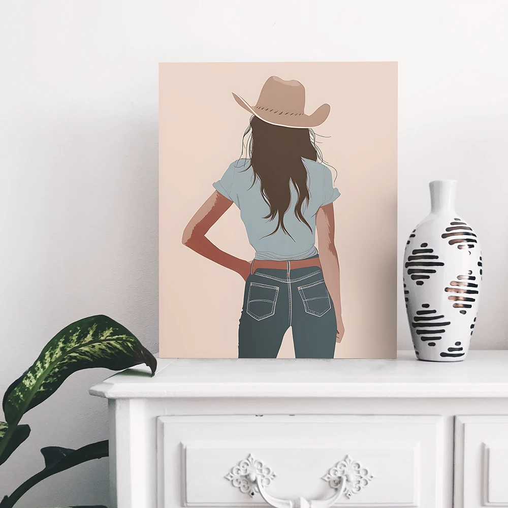 Bring contemporary style and Western flair to your space with the Girl with Cowboy Hat Vector Art Canvas. This striking canvas features a modern vector illustration of a fashionable girl wearing a cowboy hat, combining clean lines, bold design, and artistic creativity. Perfect for contemporary, minimalist, or eclectic interiors, this piece serves as a captivating focal point that adds personality, sophistication, and a touch of adventure to any room. Printed on premium-quality canvas with vibrant, fade-resistant inks, it ensures long-lasting beauty and visual impact.