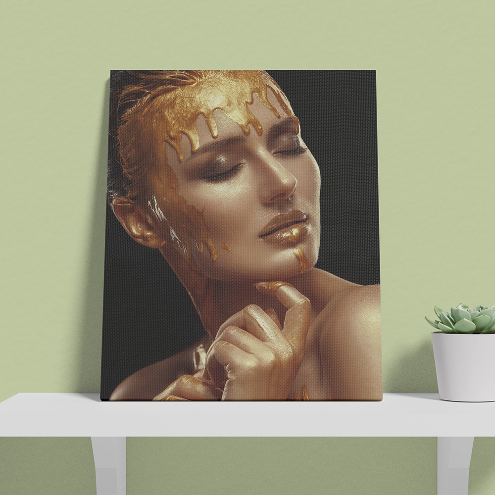 Infuse your space with elegance and modern artistry with the Golden Girl Face Wall Art. This captivating canvas features a stylized female face highlighted in shimmering golden tones, exuding sophistication, grace, and contemporary charm. Perfect for modern, minimalist, or chic interiors, this piece serves as a stunning focal point that brings personality and warmth to any room. Printed on premium-quality canvas with vibrant, fade-resistant inks, it ensures long-lasting beauty and artistic impact.