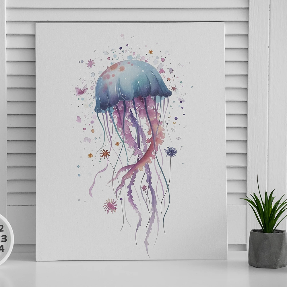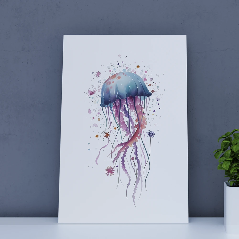 Bring the delicate beauty of the ocean into your space with the Jellyfish Watercolour Canvas Wall Art. This enchanting canvas features a graceful jellyfish rendered in soft, flowing watercolour tones, capturing its ethereal movement and serene elegance. Perfect for contemporary, coastal, or nature-inspired interiors, this piece serves as a calming focal point that adds tranquility, sophistication, and artistic charm to any room. Printed on premium-quality canvas with vibrant, fade-resistant inks, it ensures lasting beauty and visual impact.