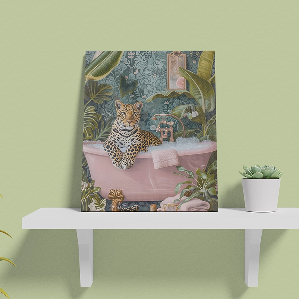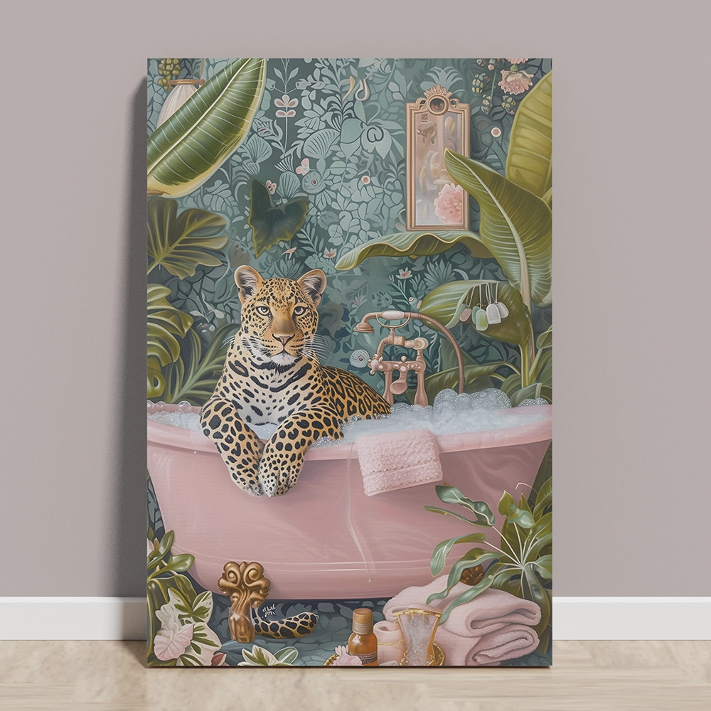 Make a bold and playful statement with the Tiger in the Bathtub Canvas Wall Art. This quirky design features a majestic tiger enjoying a relaxing soak a creative mix of luxury and humor that instantly catches attention.