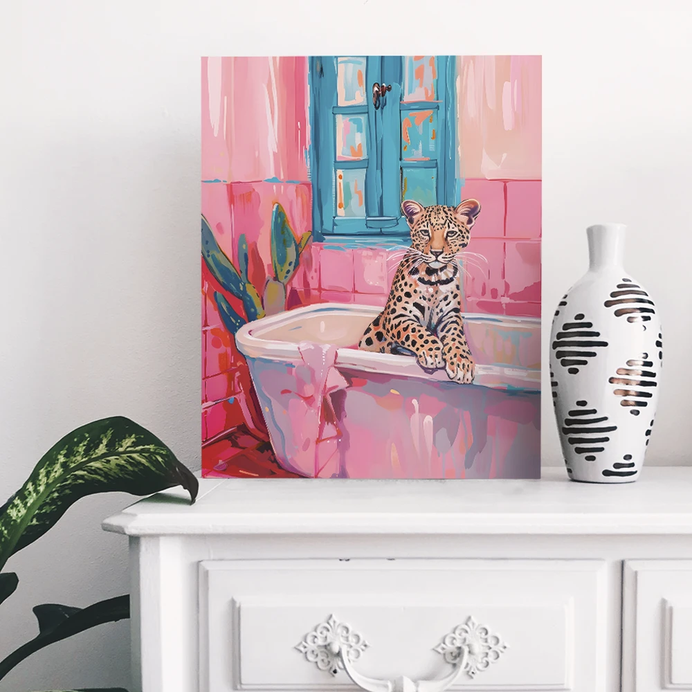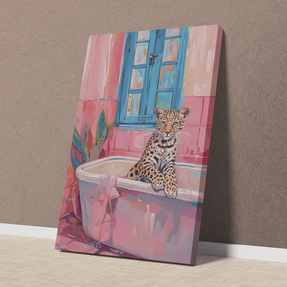 Add a touch of whimsy and charm to your interior with the Tiger d in Bathtub Wall Art. This eye-catching canvas features a beautifully illustrated Tiger lounging in a pastel-toned bathtub, creating a fun yet sophisticated statement piece. The vibrant colors, tropical elements, and modern aesthetic make it perfect for adding personality and warmth to your space.