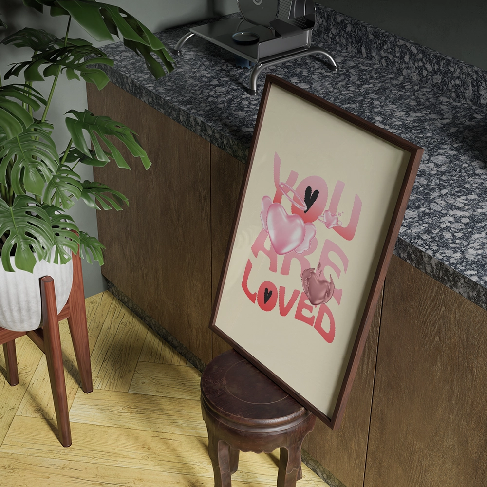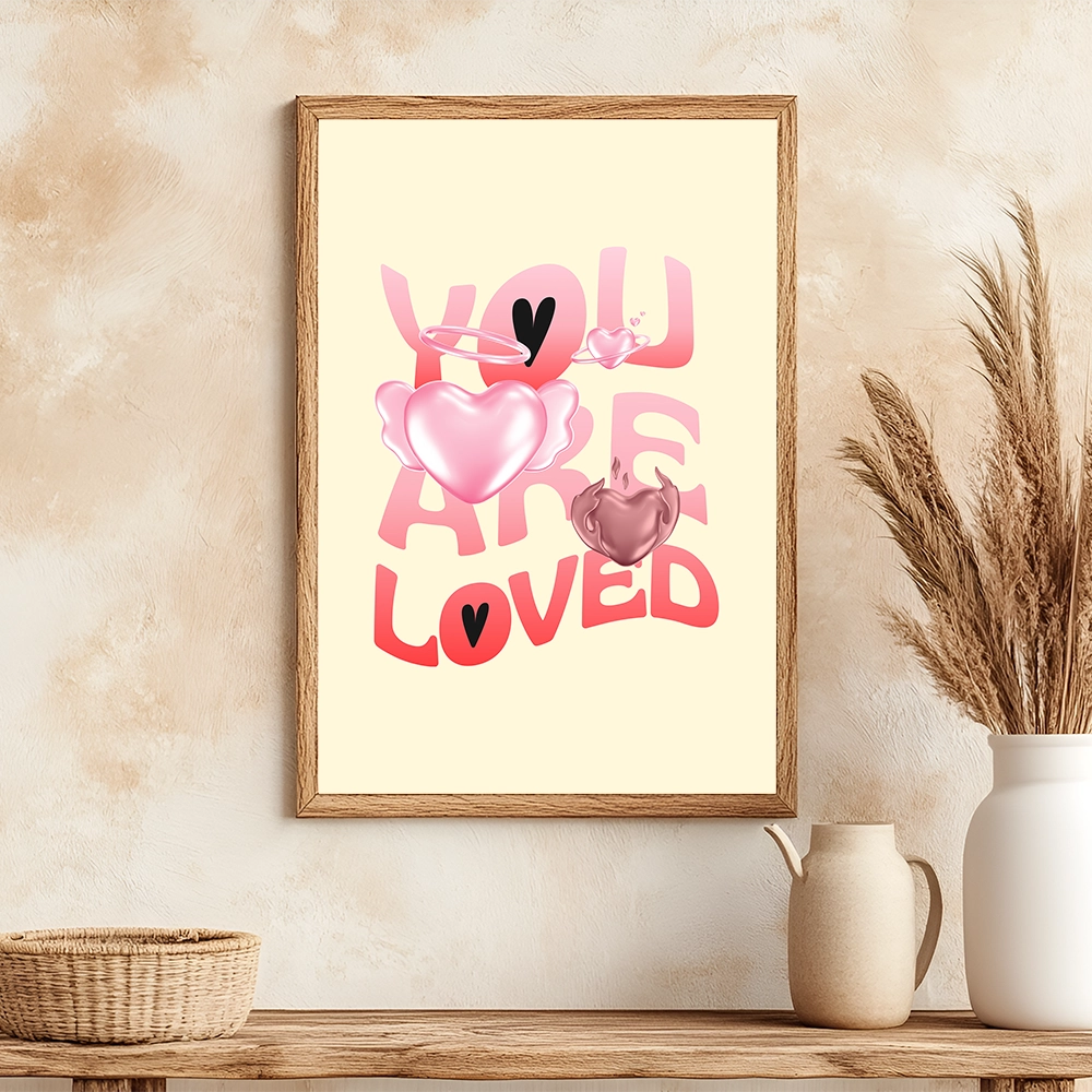 Fill your space with positivity and warmth with the You Are Loved framed wall art. Featuring glossy 3D heart illustrations and soft pink tones, this uplifting artwork is a daily reminder that love surrounds you.